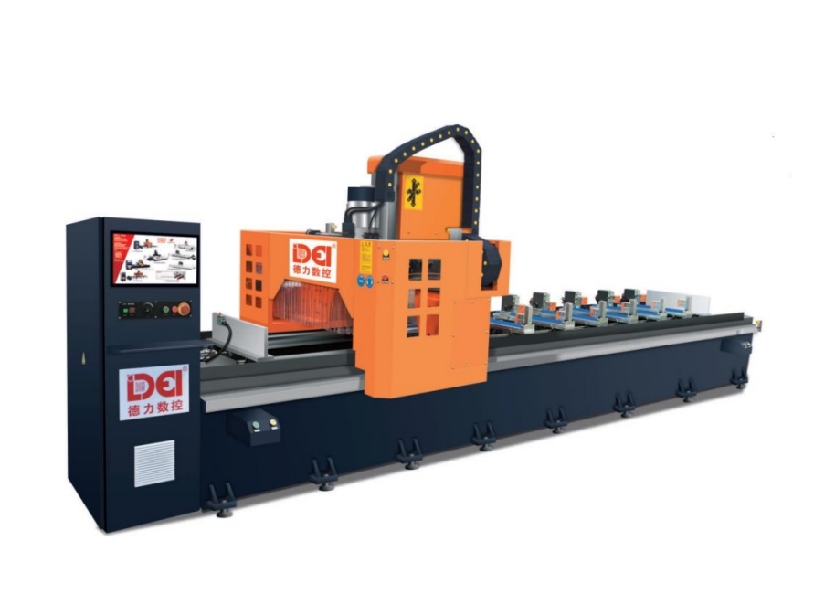 MC4軸型材加工中心,友好人機界面,設備操作簡便,一次專夾可以完成銑銷、鉆孔、攻牙、倒角等多功能的精密加工,適合作用于中長型材的多面加工。